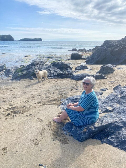 Here is a photo of me and my dog relaxing on a beach which features in the novel – enjoying a sunny afternoon there, fortunately with no crimes being committed. As yet the title of the second novel is undecided, (best suggestions so far have come from some primary school pupil friends, ‘Scream Tea’ or ‘Clotted Crimes’, amongst them!). The book is due out in 2026.